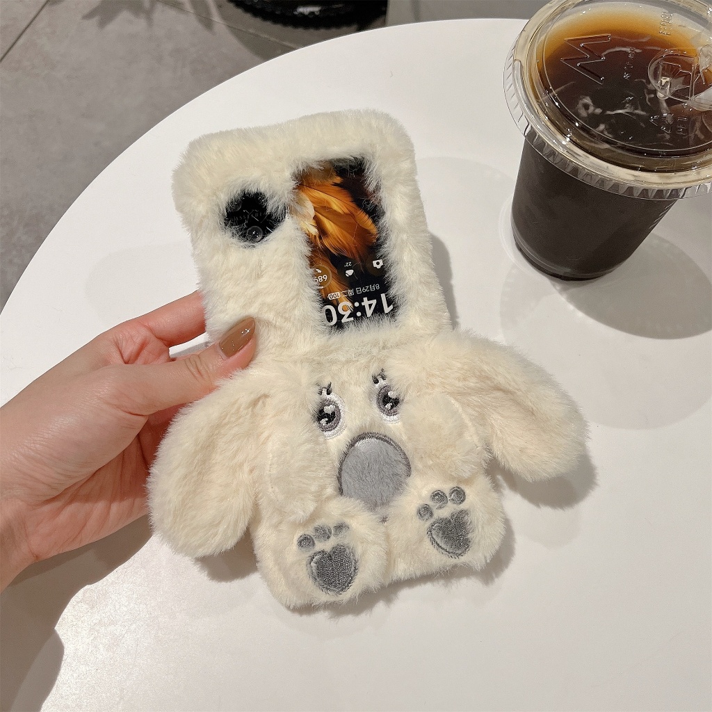 for OPPO Find N3 Flip OPPO Find N2 Flip Folding Screen Anti drop Phone Case Cartoon Cute KT Cat Winter Plush PC Hard Case