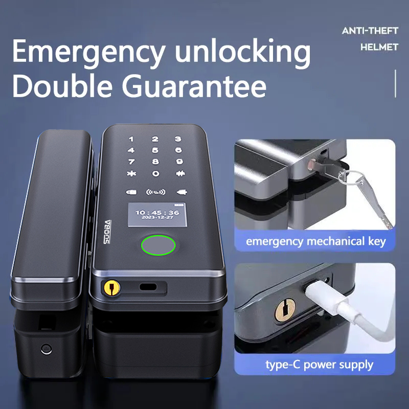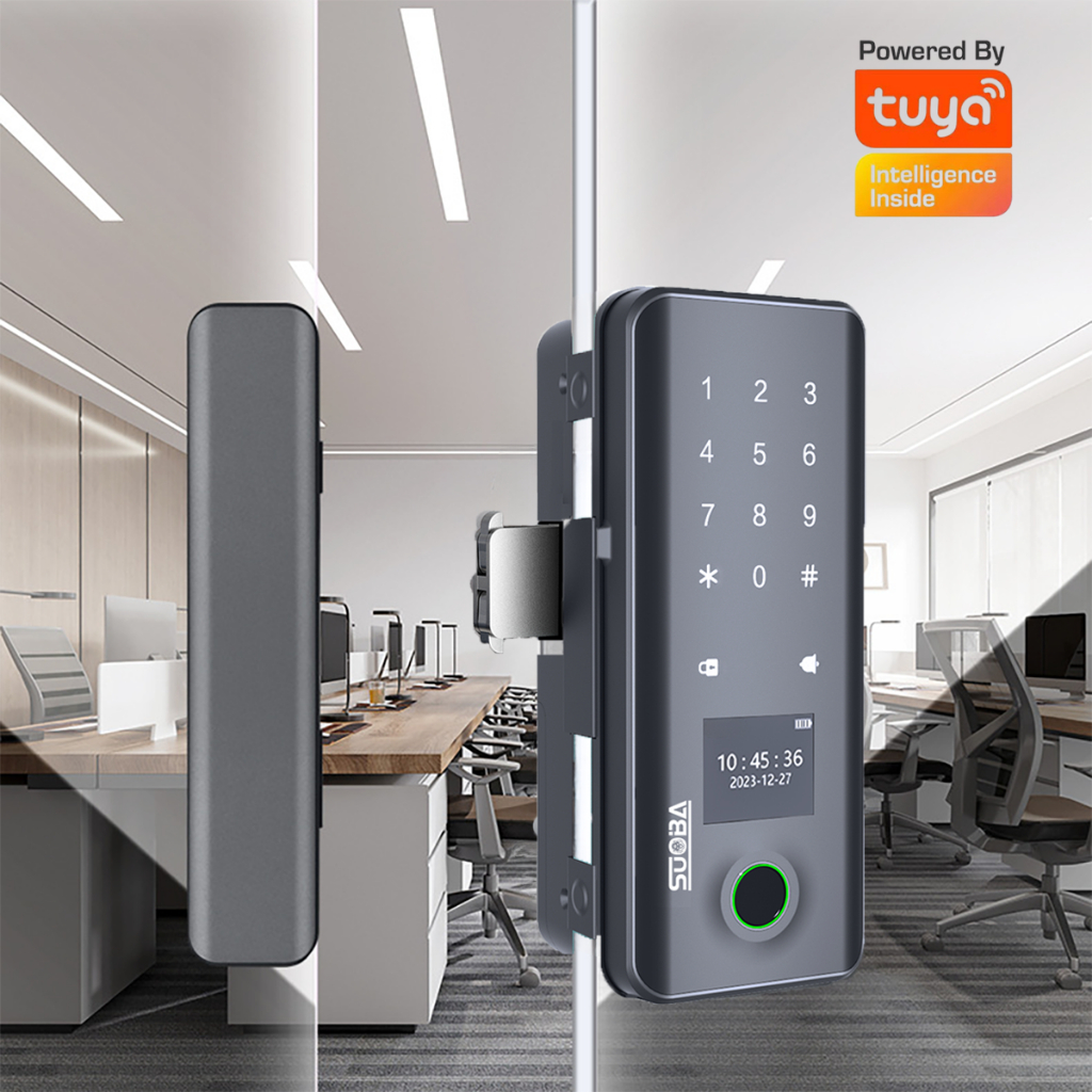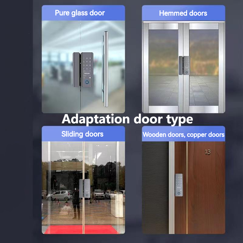 Suitable for frameless glass doors and framed wooden doors, the smart lock has fingerprint recognition password tuya app and WiFi remote unlocking function.