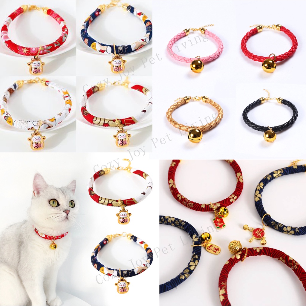 groceries pet Rantai Kucing Adjustable bell Collar cat dog rabbit simple insect repellent PU leather Necklace grooming
