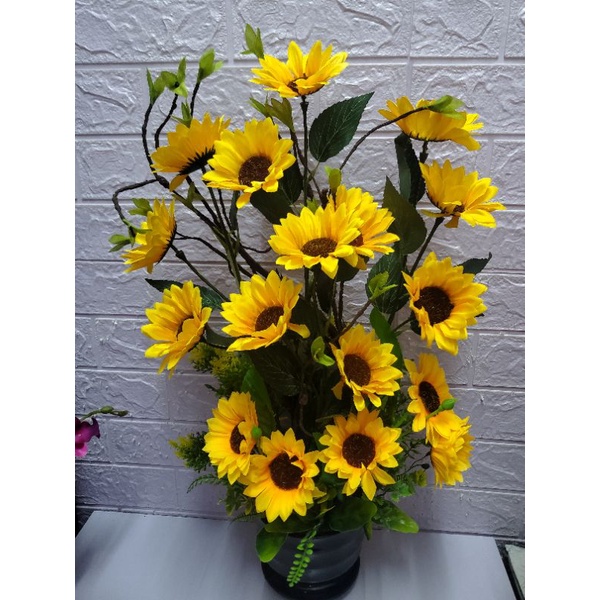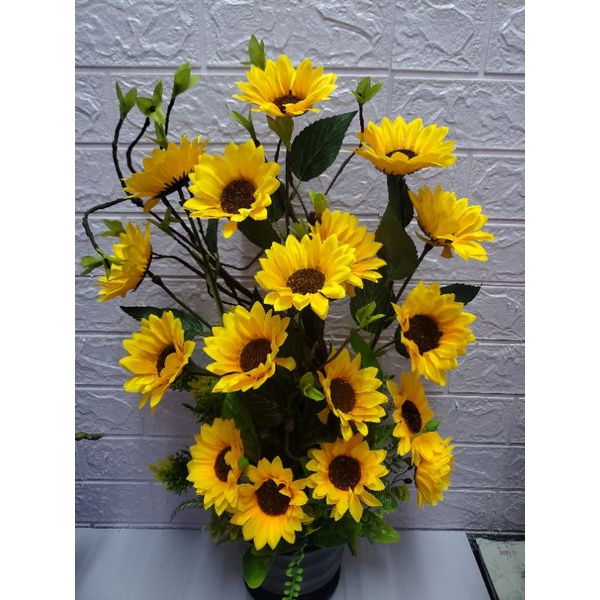 gubahan bunga matahari pasu kaca.