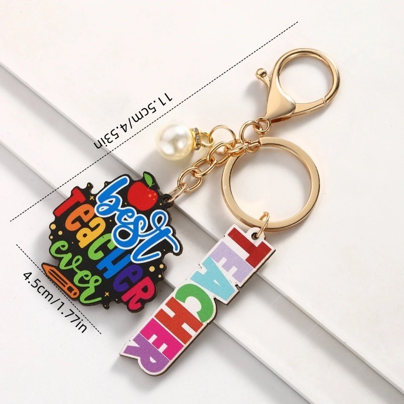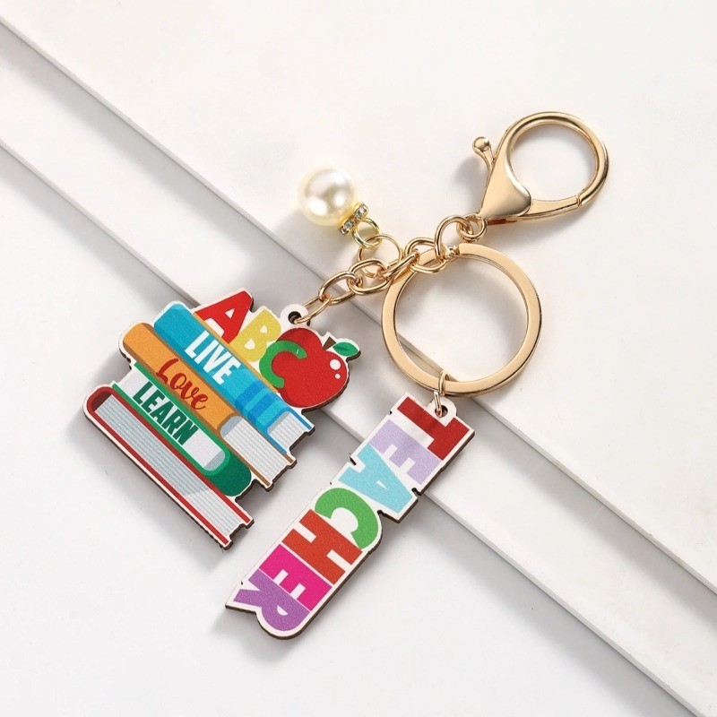 hadiah hari guru 1Pc Wooden Teacher's Day Keychain hari guru Souvenir Key Ring Cute Keychain As A Daily Gift for Teacher's Day Thanksgiving Gift