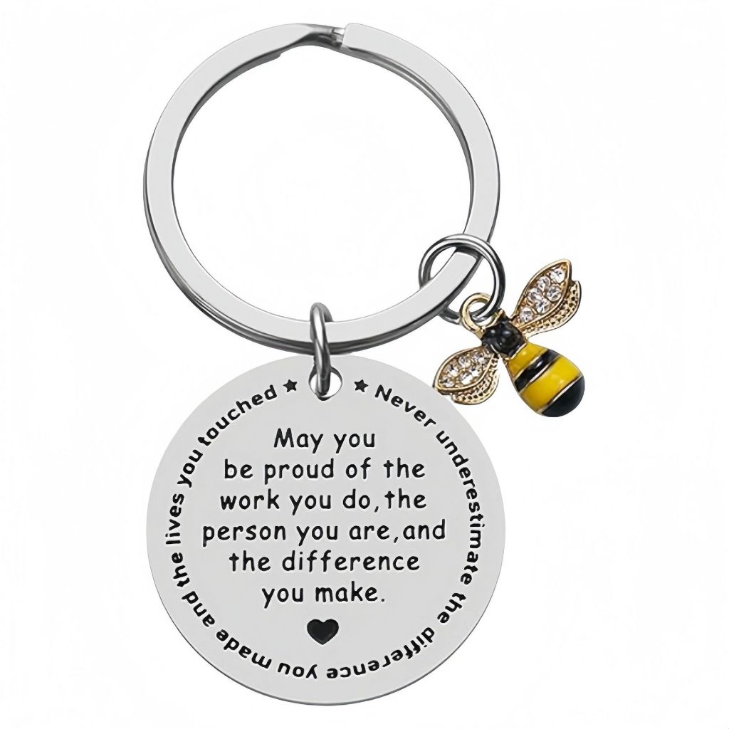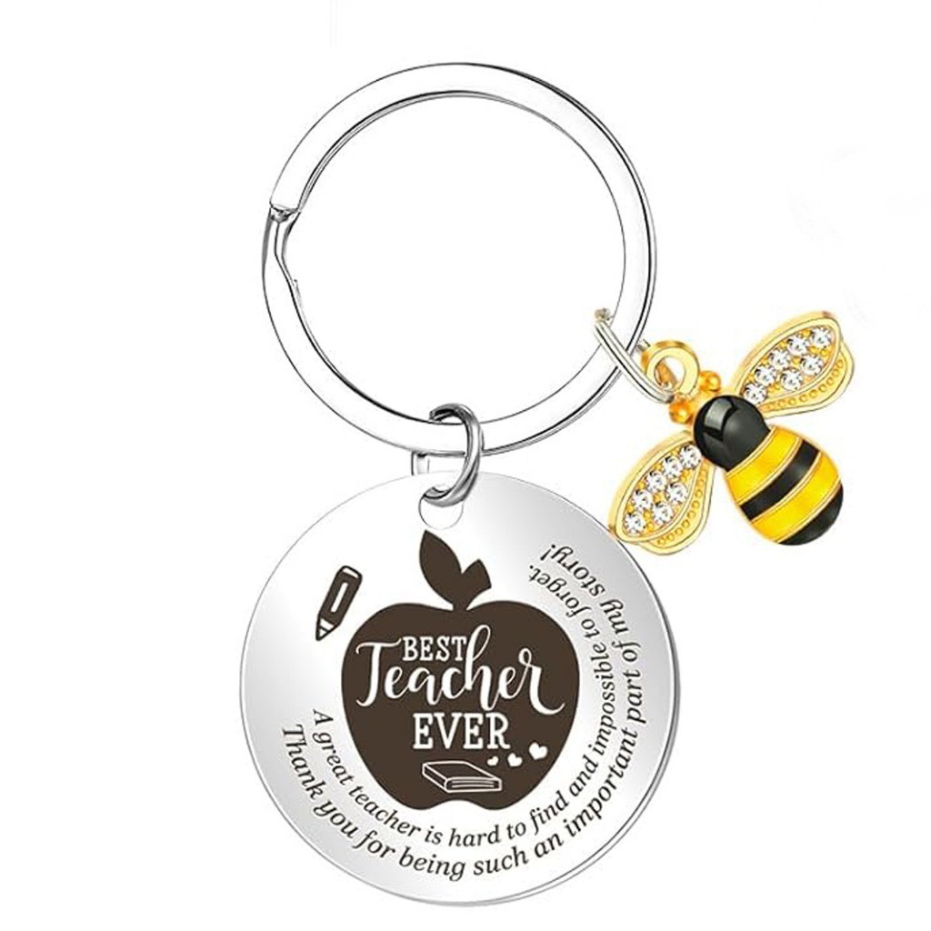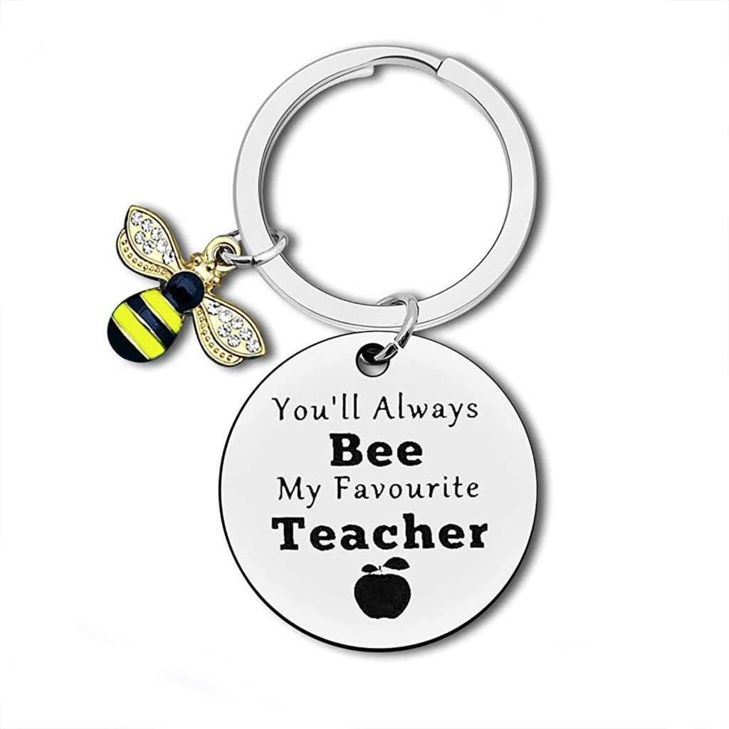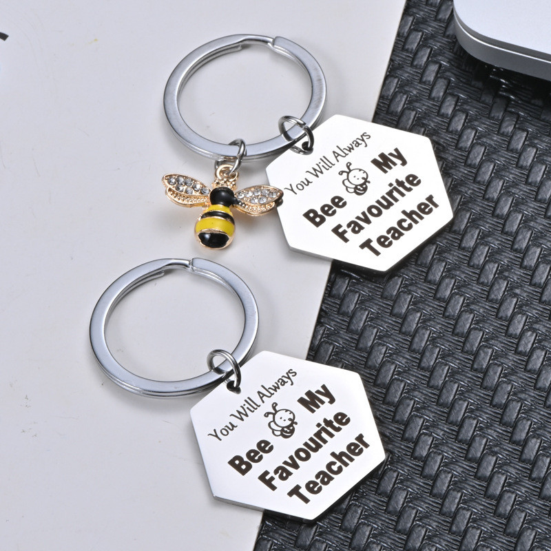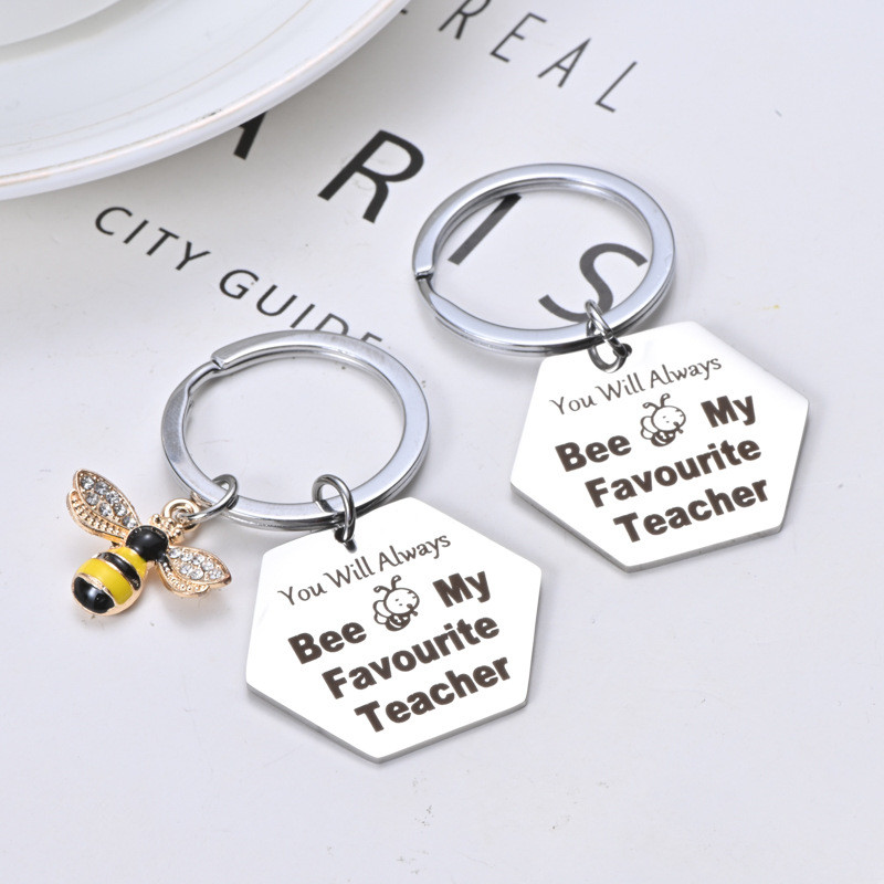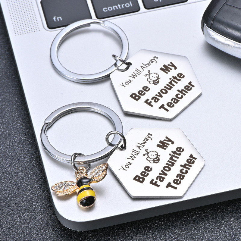hadiah hari guru Creative Stainless Steel Keychain hari guru Heart Shaped Honey Bee Pendant Souvenirs for Teacher Teacher's Day Gift Valentine's Day Gifts