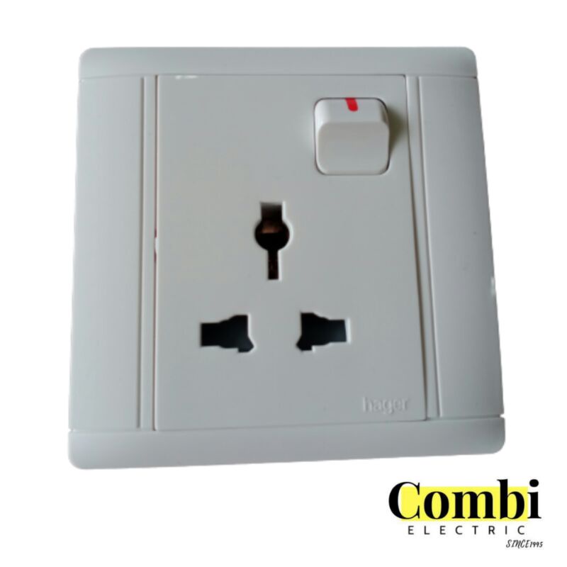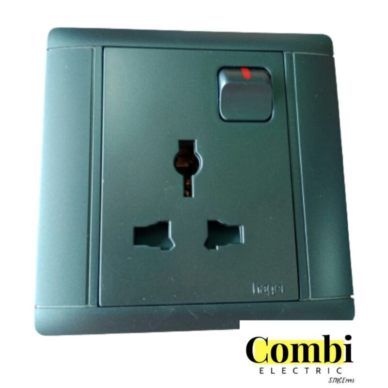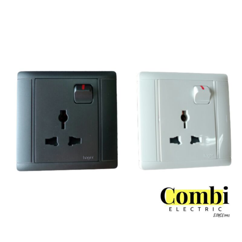 hager 16A Universal / International 10088 16A Switched Socket Outlet (White / Carbon)