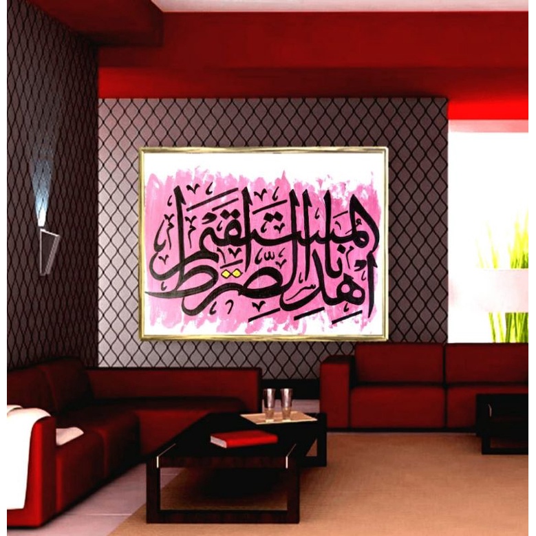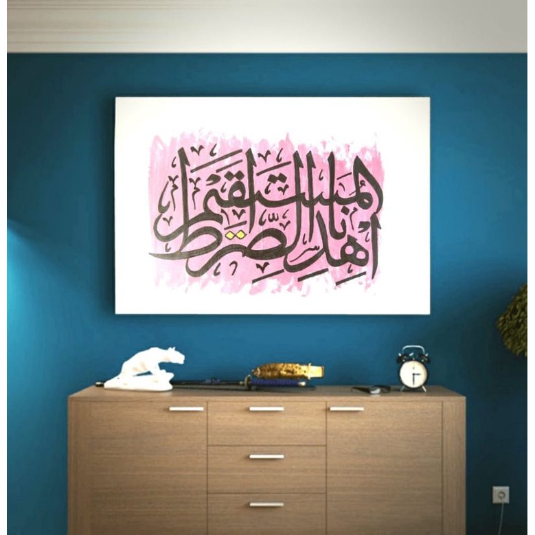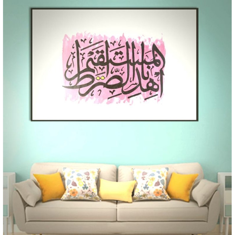 handwritten islamic calligraphy art on paper with frame,A4 size,WALLDECO KUFI KHAT,HOMEDECO KHAT ISLAMIC design