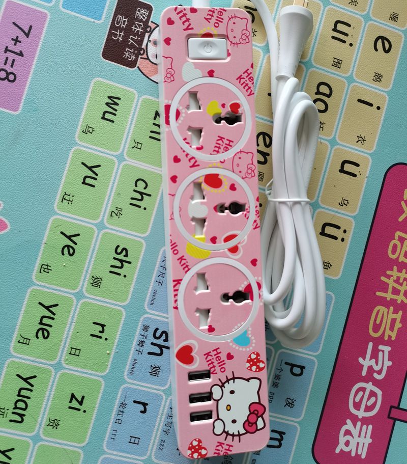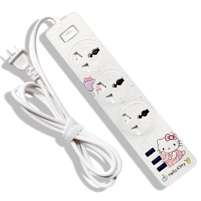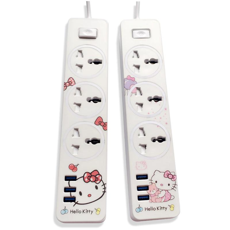 hello kitty cartoon USB charging plug base multi-function socket 1.6m wiring board with switch cute recepatacle