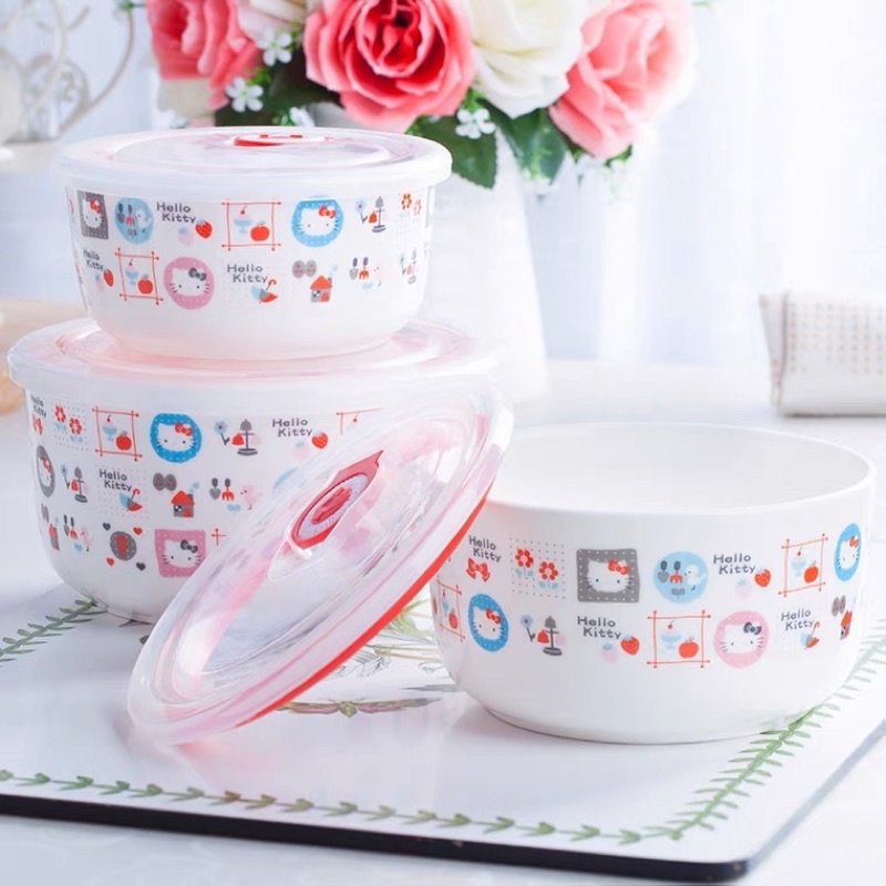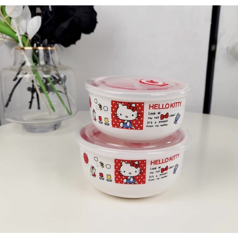 hello kitty ceramics bowl with lid, hello kitty ceramics food container