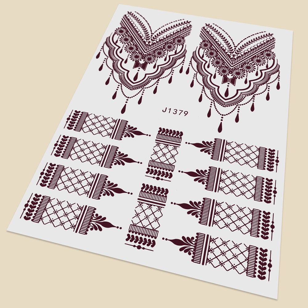 henna sticker White Marron brown Sticker Pengantin Inai Sticker Putih Lace Henna Temporary Tattoo Lace
