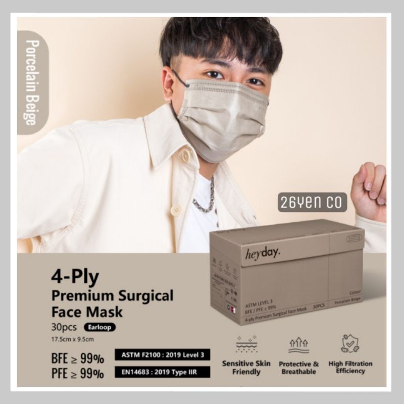heyday Porcelain Beige 4ply Adult Premium Surgical Medical Face Mask BFE PFE VFE 99%