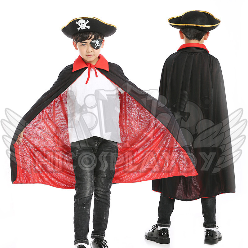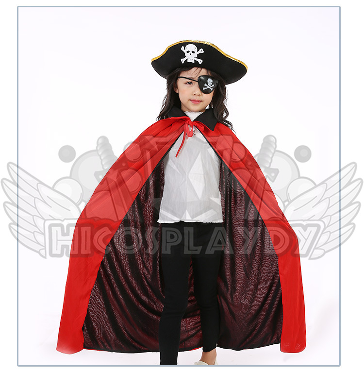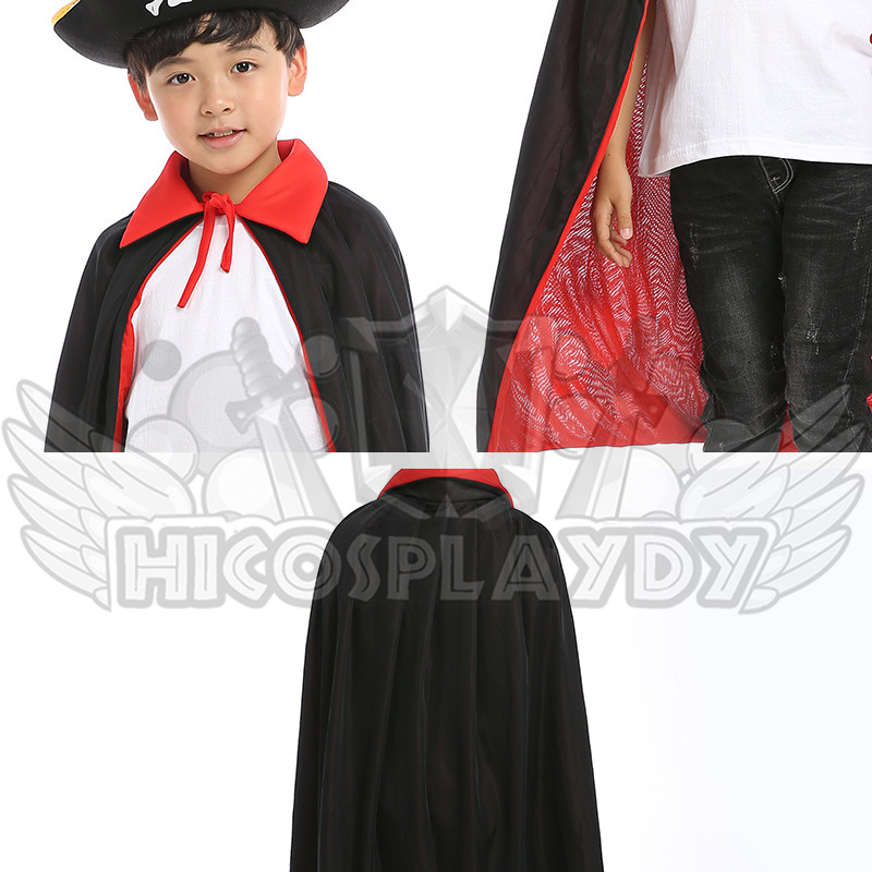 hiCosplaydy Kids Adult Pirate Ship Captain Cosplay Black Red Vampire Pirate Cape Hat Children Costume Set