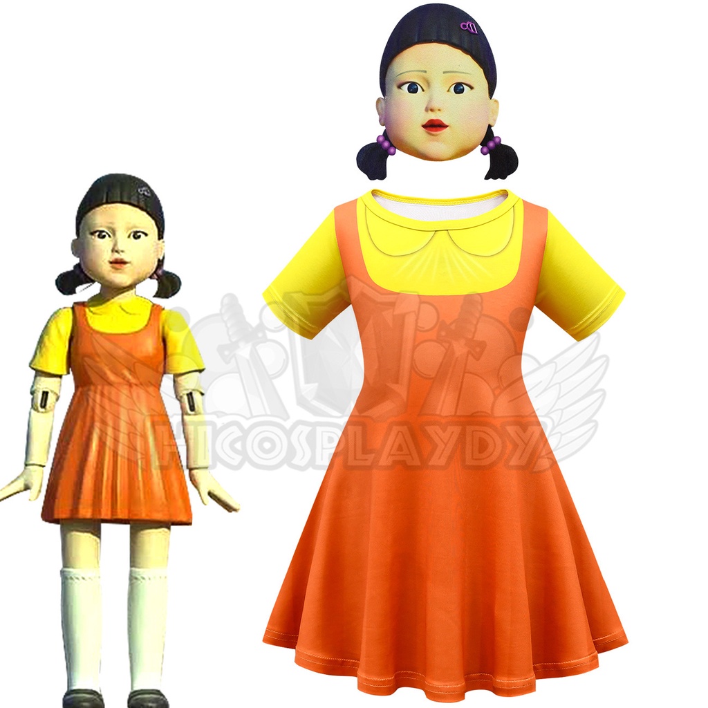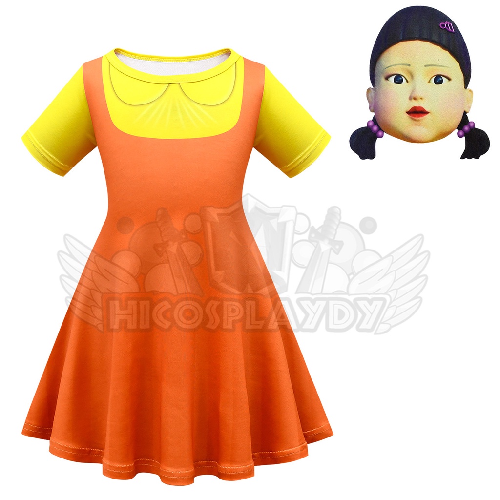 hiCosplaydy Squid Game Robot Doll Star Cosplay Yellow Little Girl Dress Halloween Costumes Cosplay
