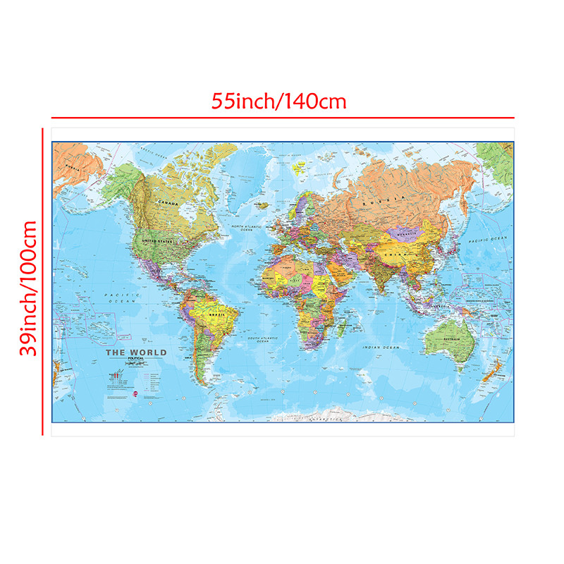 hot The World Political MapClassic Educational Map Detailed Painting Wall Art Poster School Supplies Multi-size