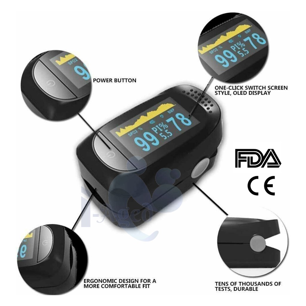 i-Aged Finger Pulse Oximeter / Oxygen / Pulse - with CE and FDA