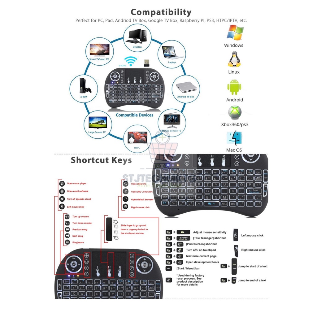 i8 Wireless Remote Control / Airmouse / Wireless Keyboard (7 Colours)(Lithium)