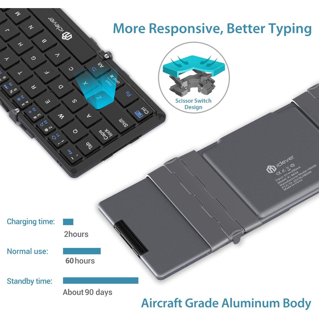 iClever BK08 Bluetooth Keyboard Type C Charging with Sensitive Touchpad (Sync Up to 3 Devices), Fodable Keyboard