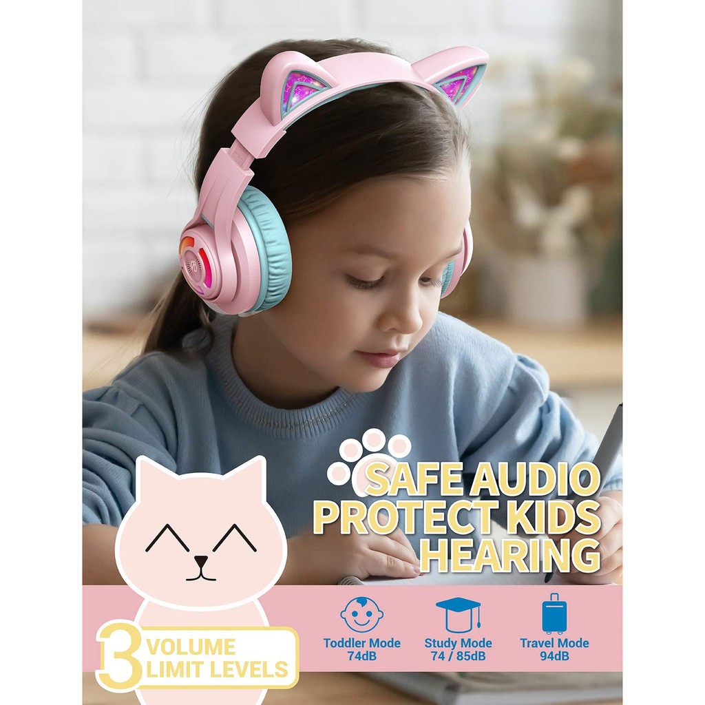 iClever Cat Ear Bluetooth RGB LED Kids Headphones BTH13