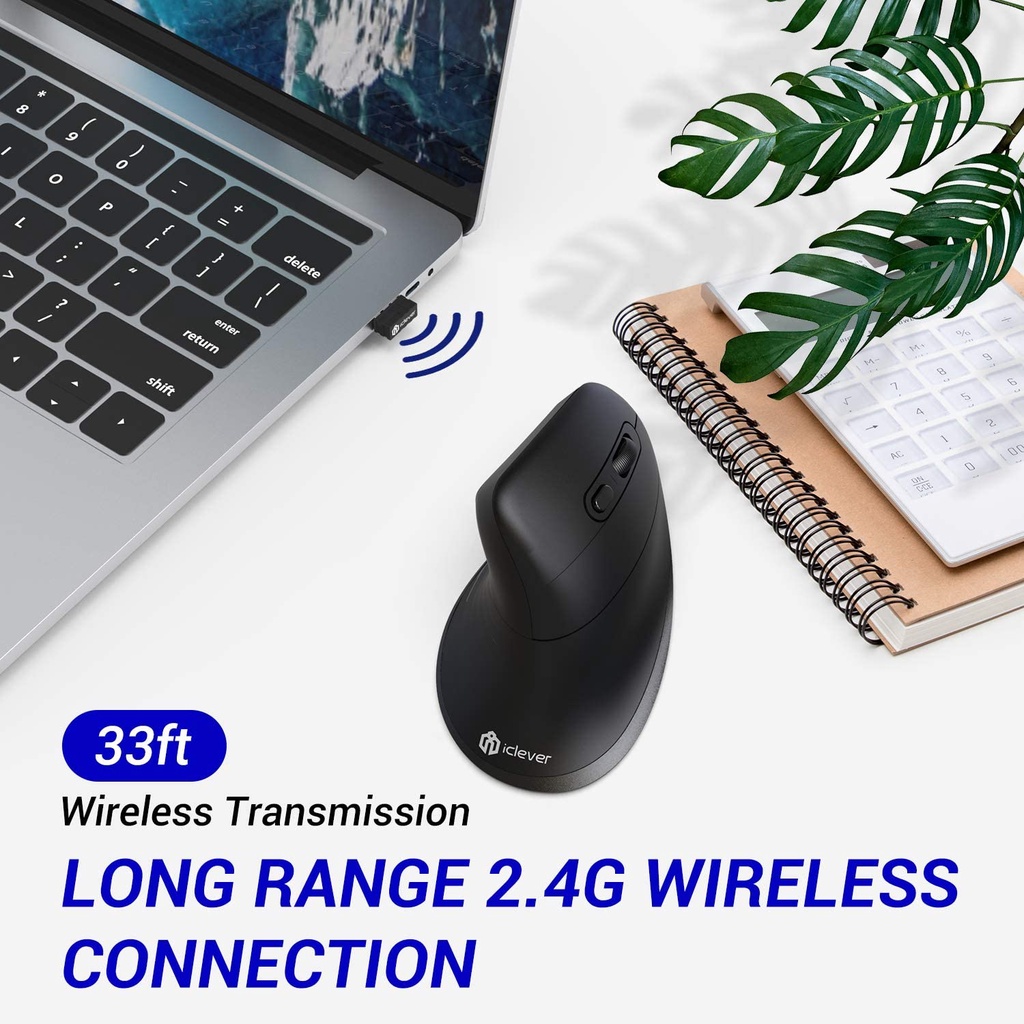 iClever Vertical Mouse - Chargable Ergonomic Mouse Wireless Comfortable 2.4G Optical Ergo Mouse Adjustable DPl