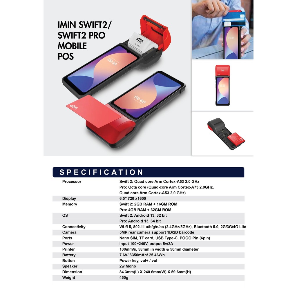 iMin Swift 2 / Swift 2 Pro WiFi Smart Mobile Terminal Handheld NFC (2GB+16GB / 4GB + 32GB)