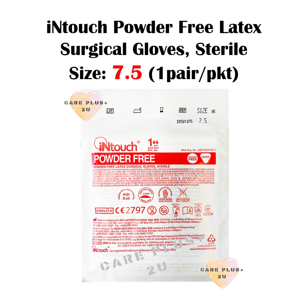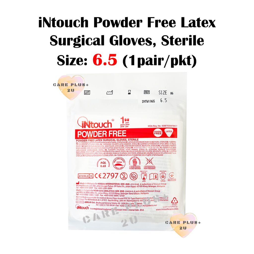 iNtouch Powder Free Latex Surgical Gloves, Sterile [ Size : 6.0 / 6.5 / 7.0 / 7.5 ] (1 pair/pkt)