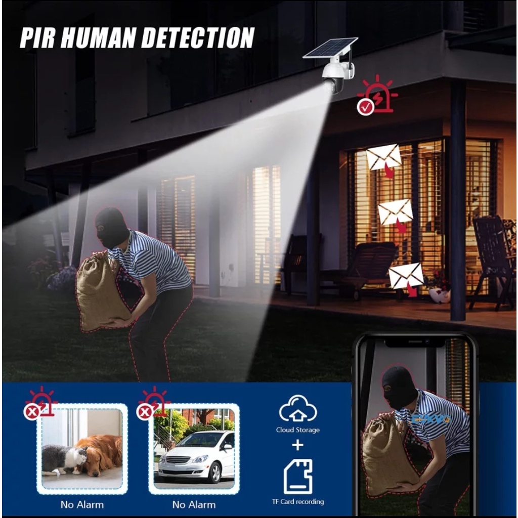 iPPro / Eseecloud Solar Powered Battery 4G Sim Card / Wifi 4MP Outdoor PTZ 360 Rotatable Wireless CCTV Camera