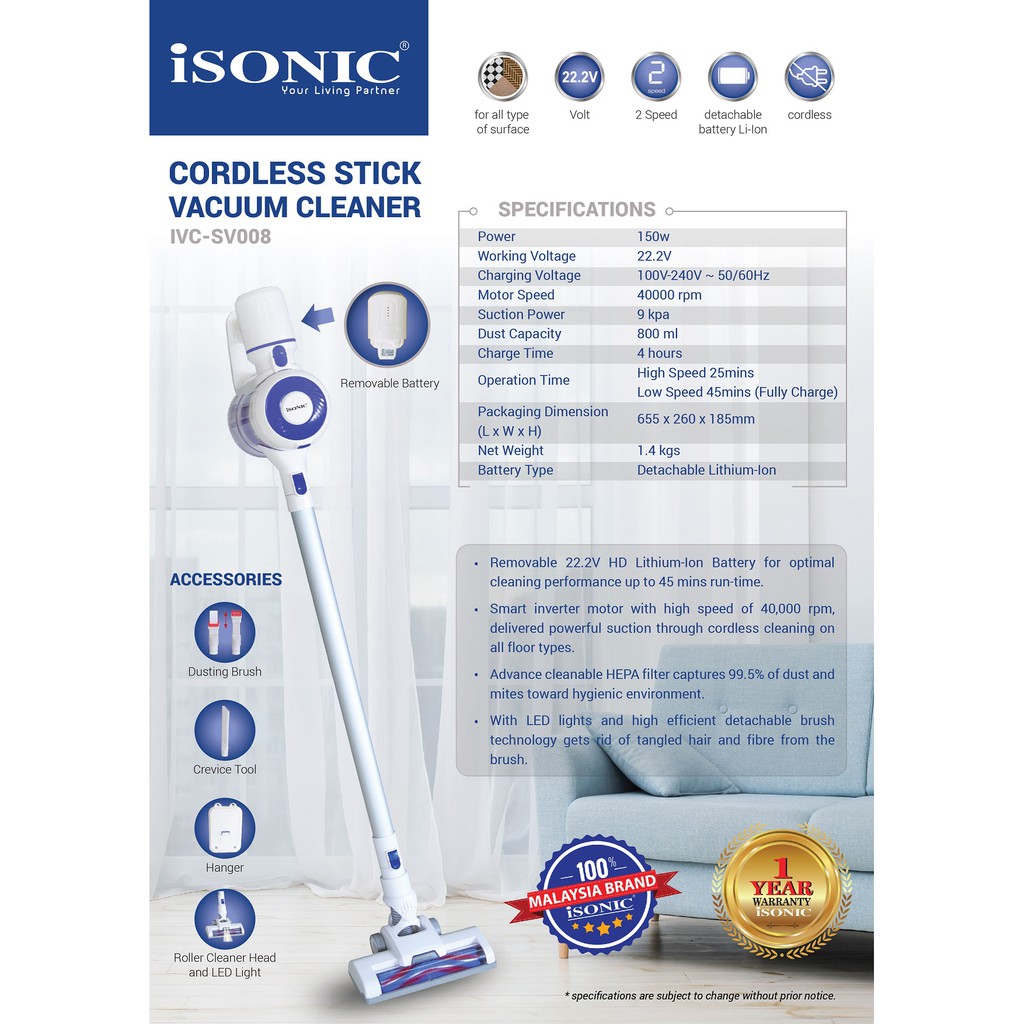 Isonic Cordless Stick Vacuum Cleaner IVC-SV008