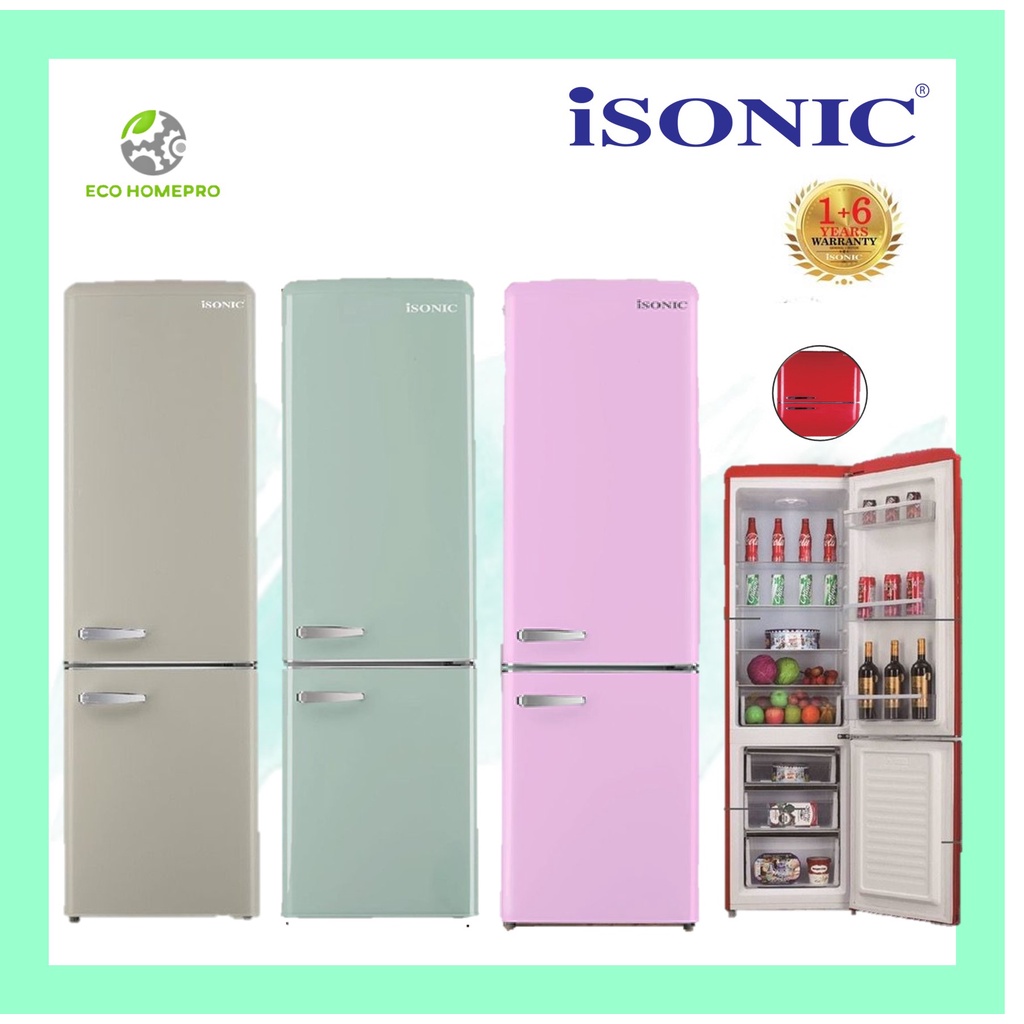 iSONIC Double Door Vintage Refrigerator MDR-BCD261LH (Red/White Cream/Light Green/Light Pink)