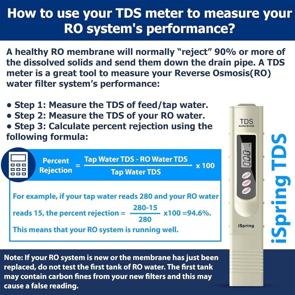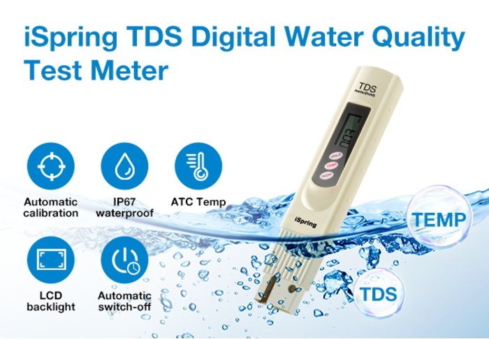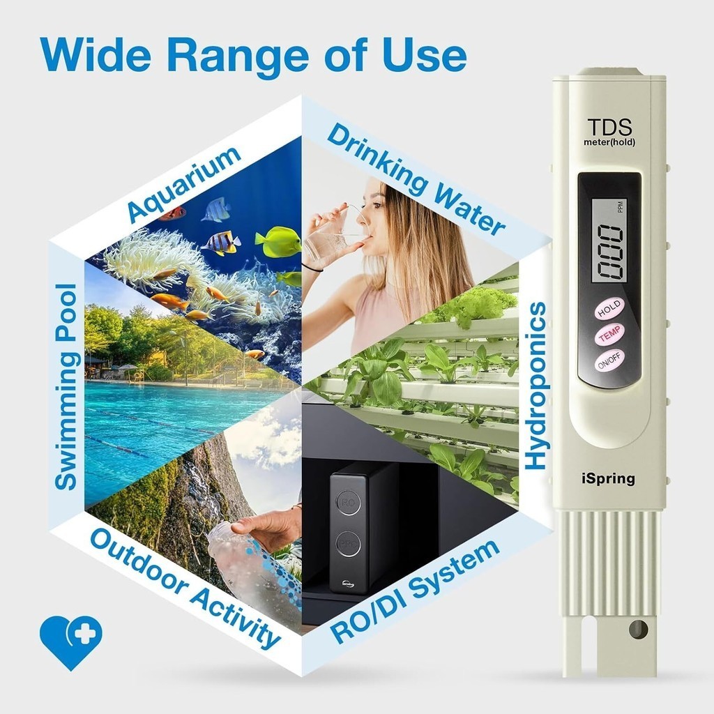 iSpring TDS-3 PPM/TDS/Temp Water Quality Tester Water Quality Testing Tool For Drinking Water Portable Tester Pen Test Meter with Temperature Test Function Aquarium Swimming Pool