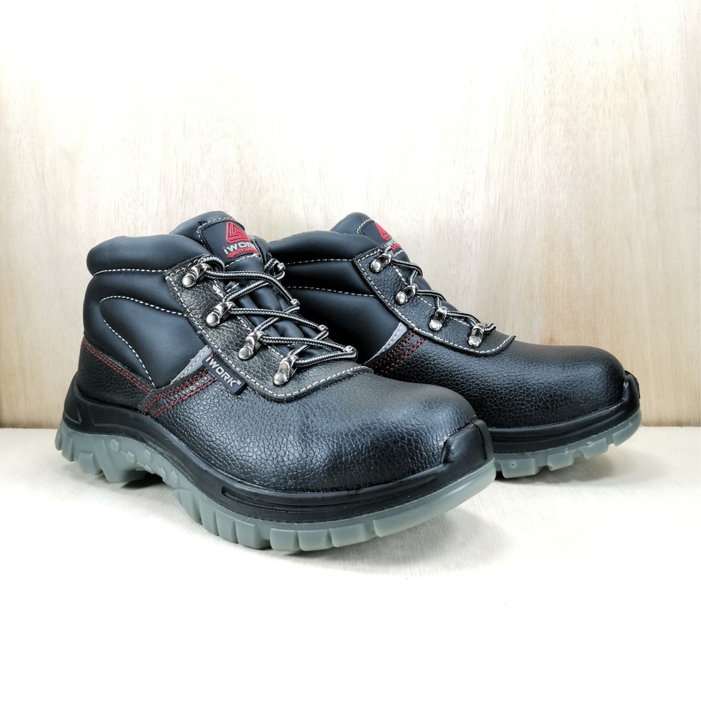 iWork Safety Shoes W97-9709 Mid Cut Safety Boots with Steel Toe and Steel Plate Black Colour