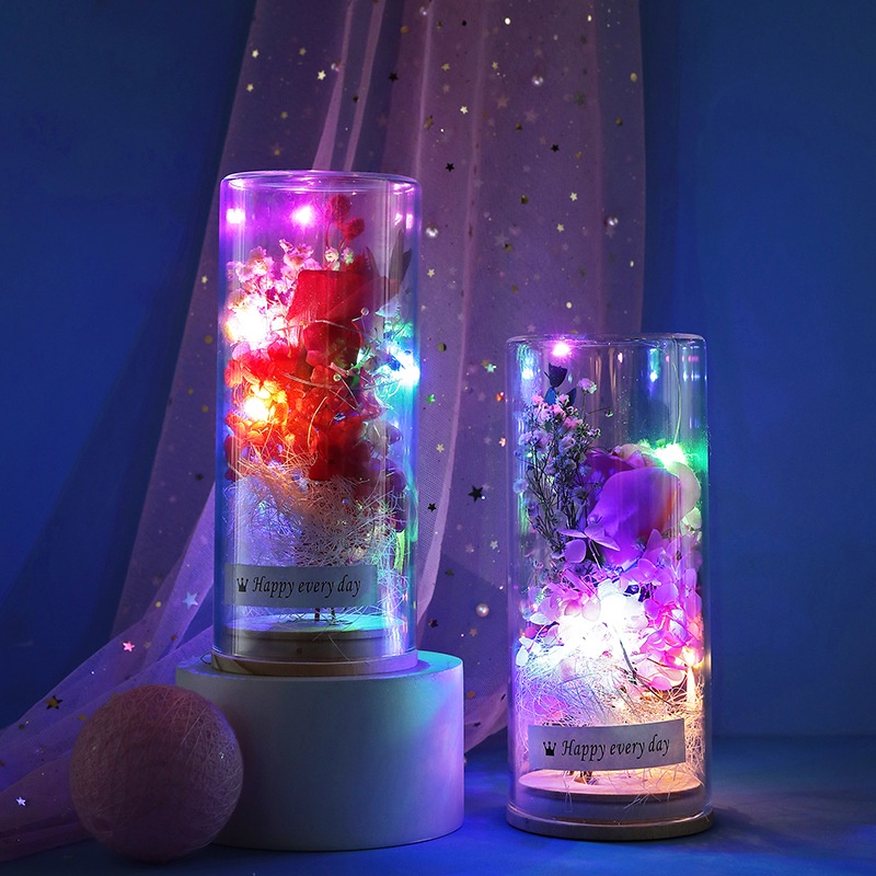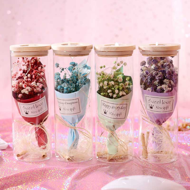 ins gadis bilik tidur bercahaya bunga kering kaca hiasan botol lampu bintang pasangan bunga kering wish botol kaca hadia