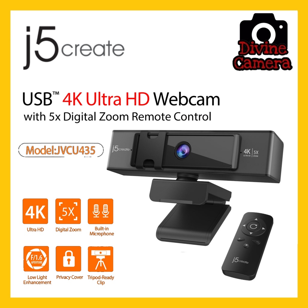 j5 create USB 4K ULTRA HD Webcam with 5x Digital Zoom Remote Control JVCU435