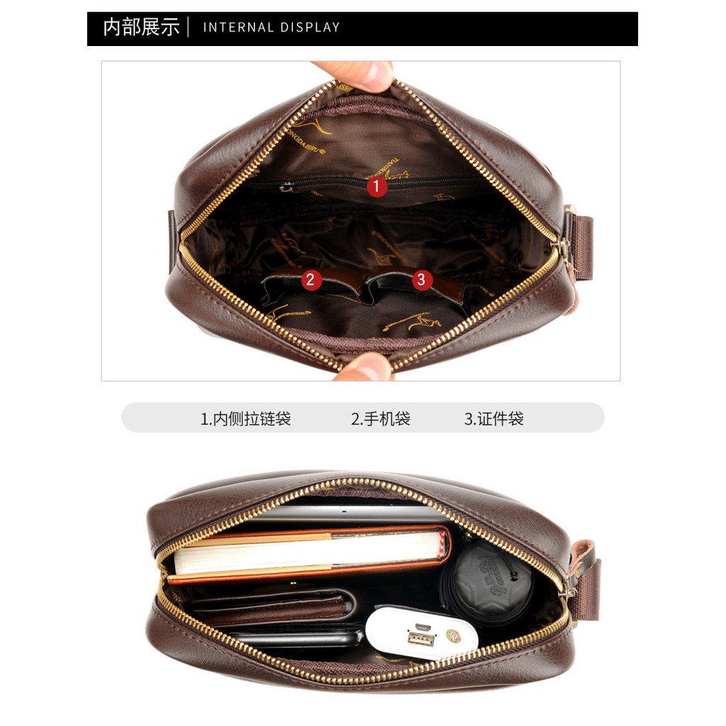 kangaroo Genuine Leather Men's bag Shoulder Begs Business Casual sling Messenger bag Mini backpack