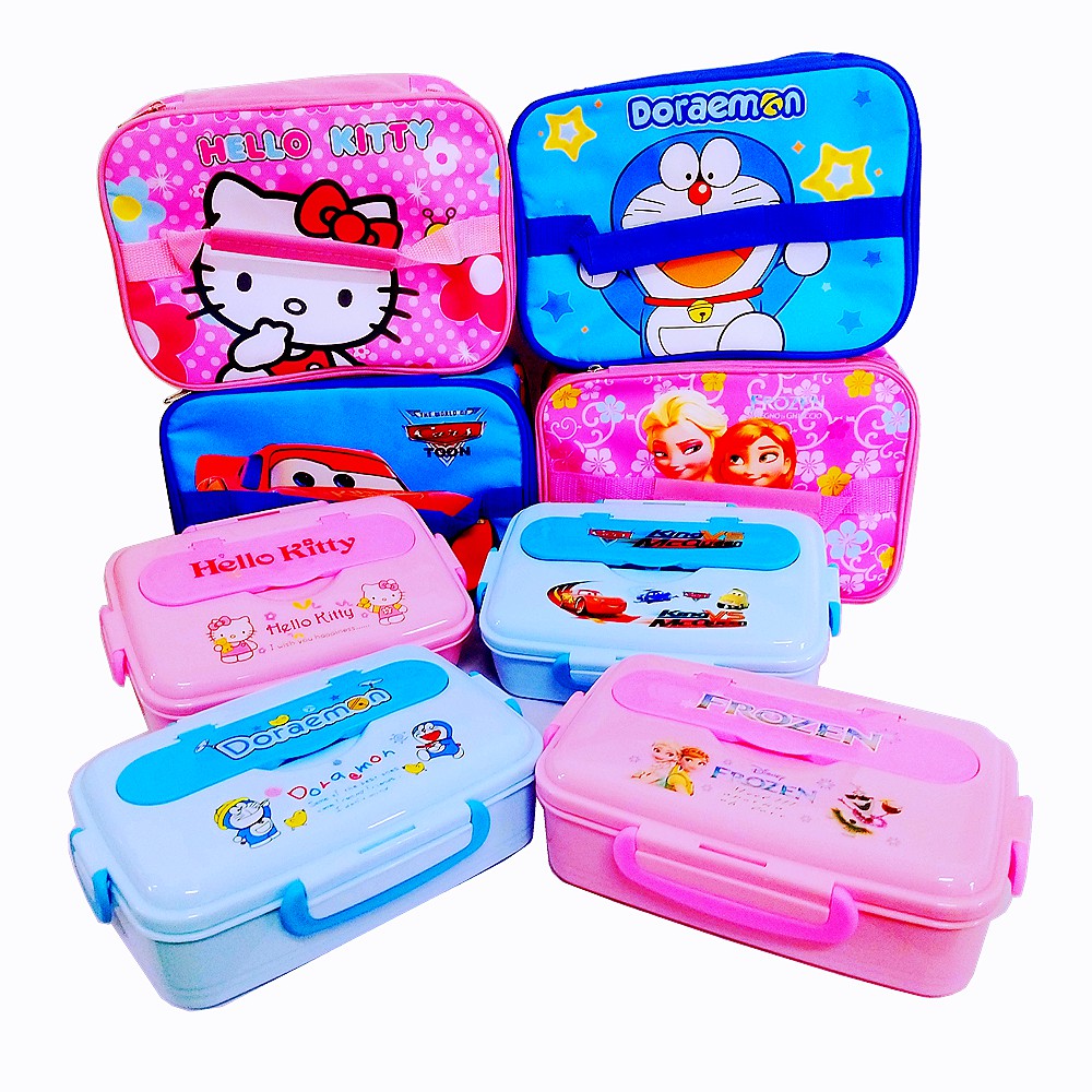 kids Lunch Box Bento 304 Stainless Steel -Cute Cartoon FROZEN DORAEMON HELLO KITTY food container & bag(Ready Stock)