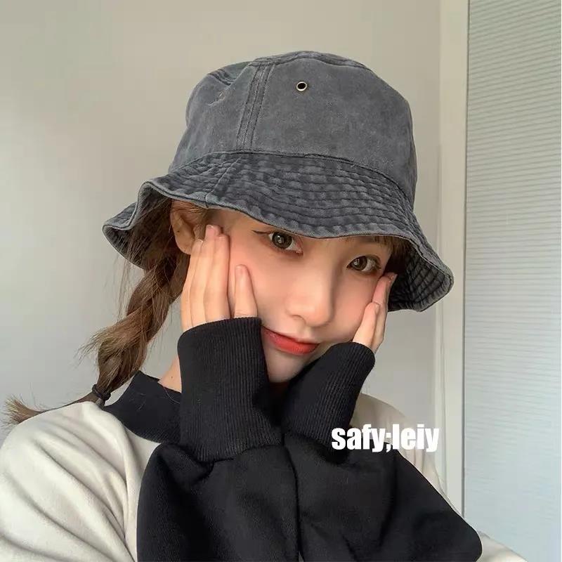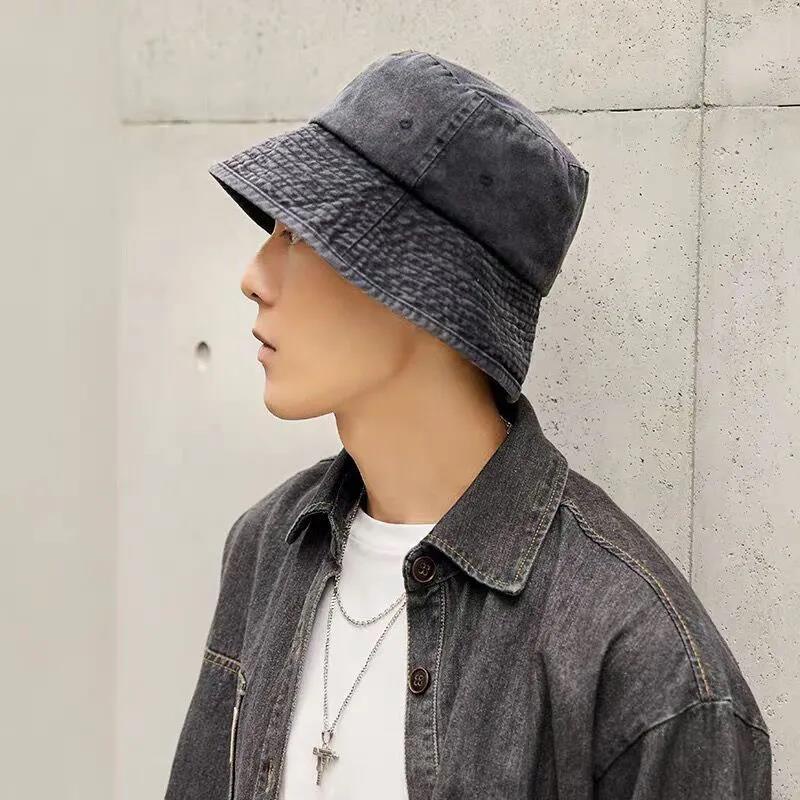 korean bucket hat vintage washed cowboy fisherman hat couples fashion bucket hat for men women breathable solid color beach hat