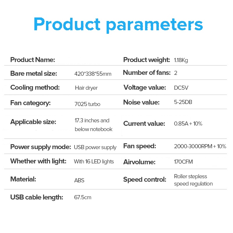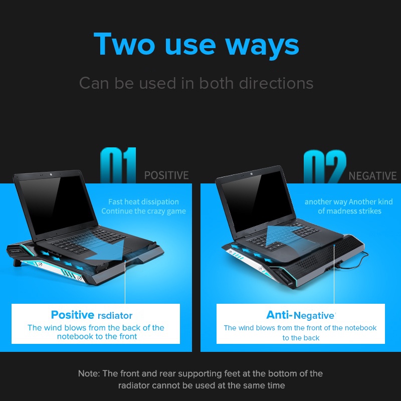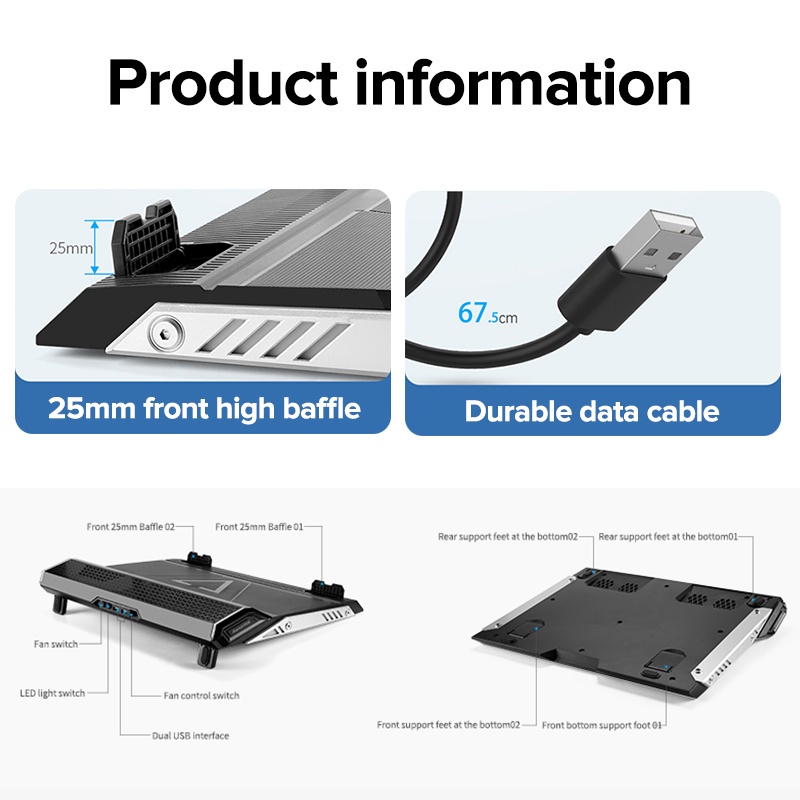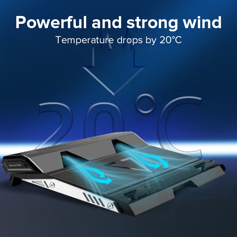 llano V6 Gaming Laptop Cooler LED 2 USB Port 3000RPM Laptop Fan Stand Dual Turbocharging and Efficient Heat Dissipation