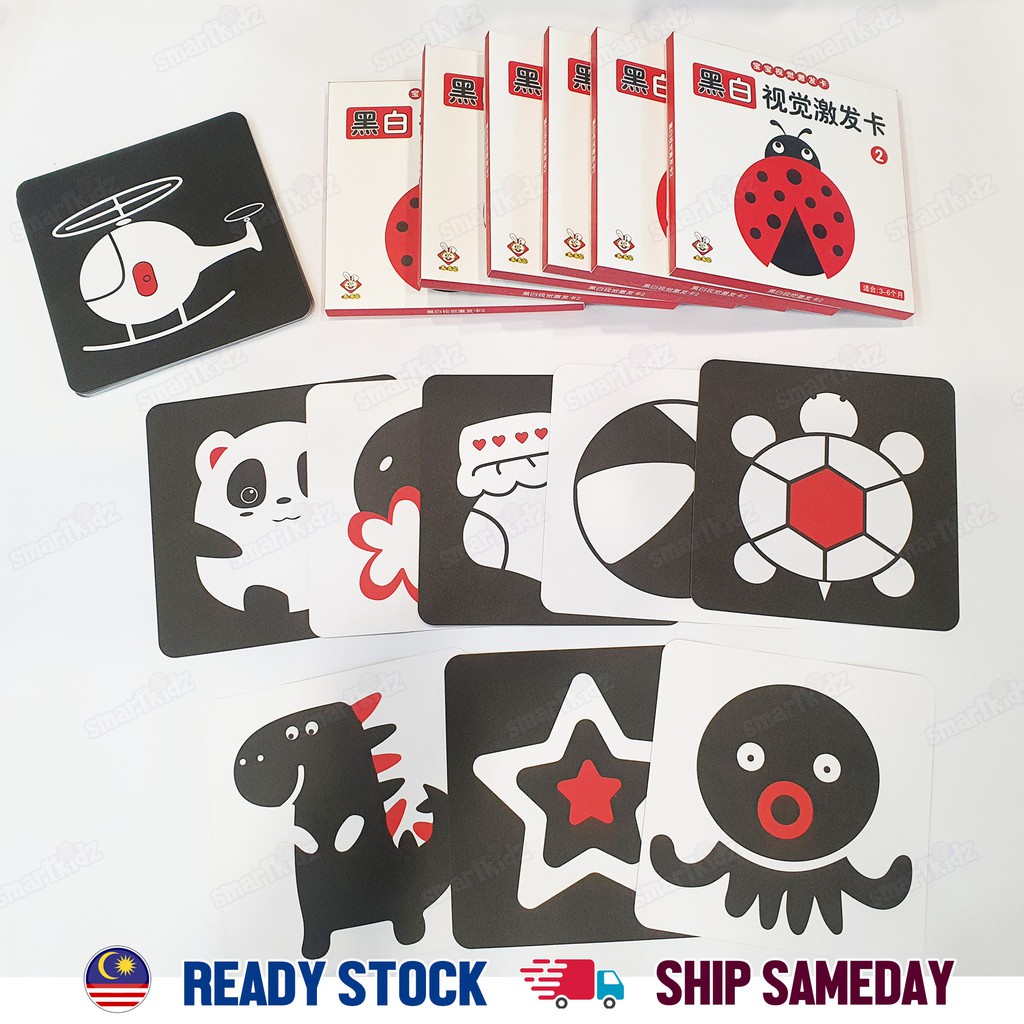 mainan kanak-kanak Montessori Baby Flash Card | Baby Sensory Cards | High Contrast Visual Stimulation Learning for Baby/