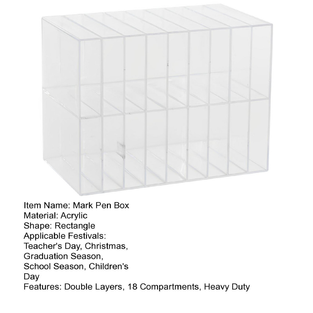 manclothescase Mark Pen Storage Box Marker Container Box Acrylic Double Layer Pen Storage Box with 18 Compartments Desktop Organizer for Art Supplies Pens Pencils Home Office Divid