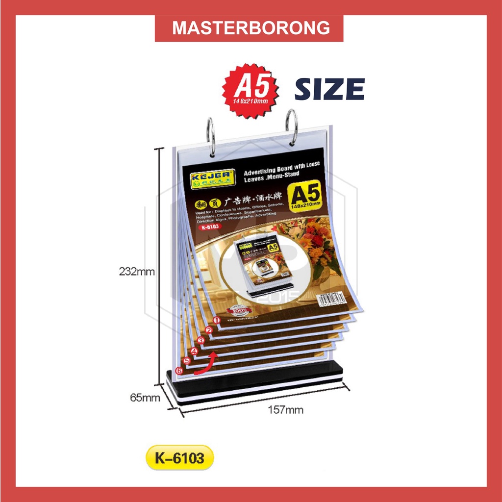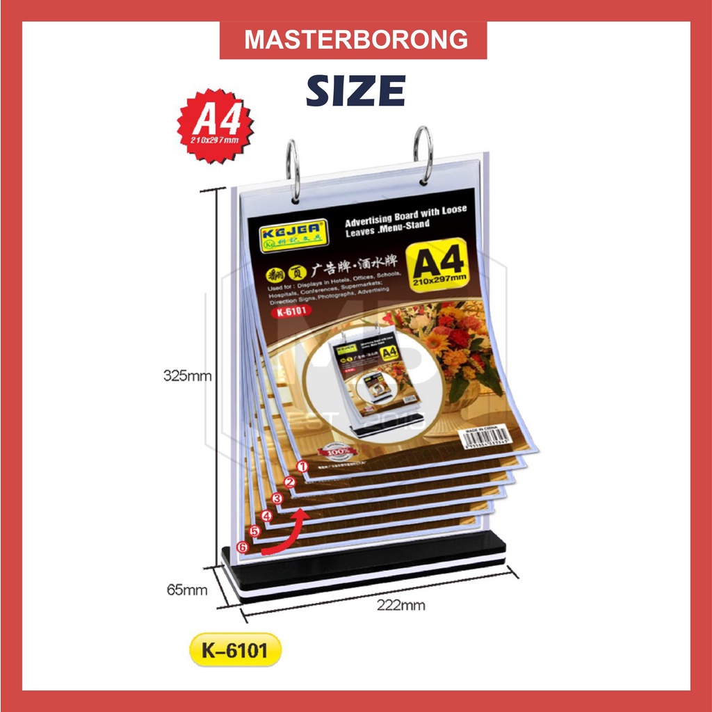masterborong A4/A5/A6 Sizes Flip Menu Stand Display Table Stand with 6 Loose Leaf Flip Menu Berdiri 6 helai halaman