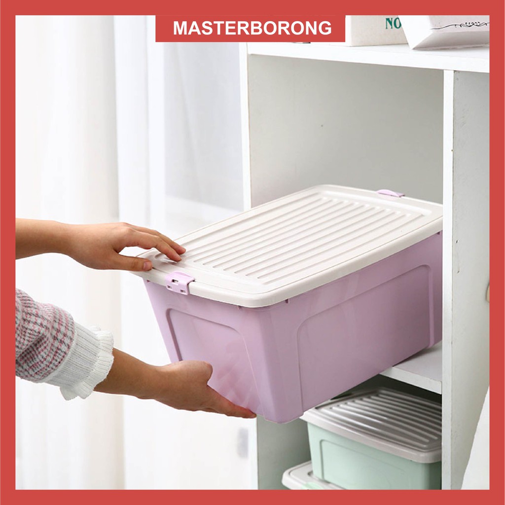masterborong Clothes Storage Box Plastic Storage Box Household Storage Box with Lid Kotak Simpan Cabinet Organizer