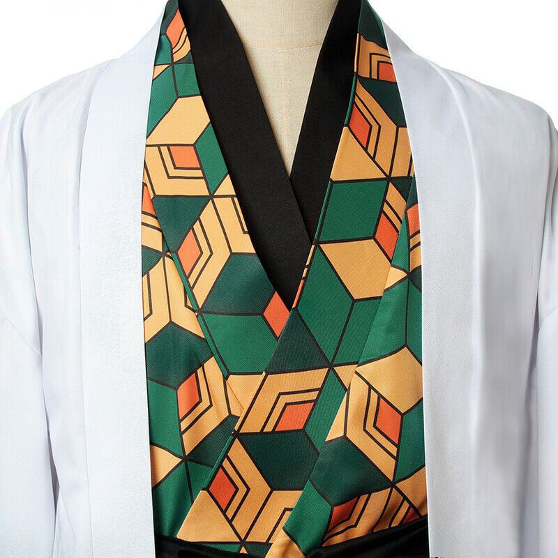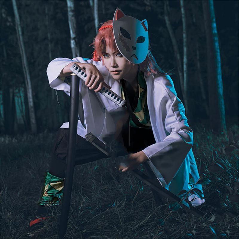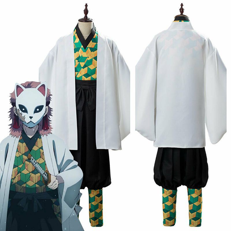 men Demon Slayer Kimetsu no Yaiba Sabito Cosplay Costume Kimono Cloak Outfit FullSet wig mask gift