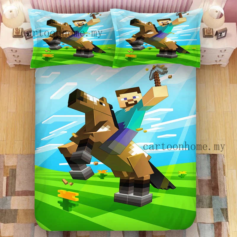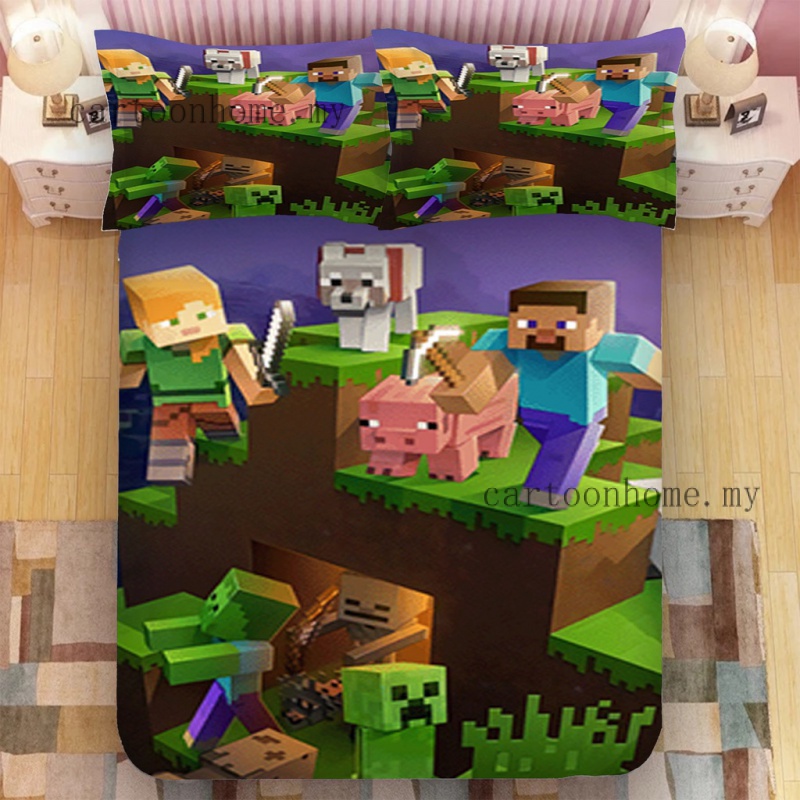 minecraft Bed Set Single/Super single/Queen/King Fitted Bedsheet With Rubber around and Pillowcase Customizable Cartoon Beddings