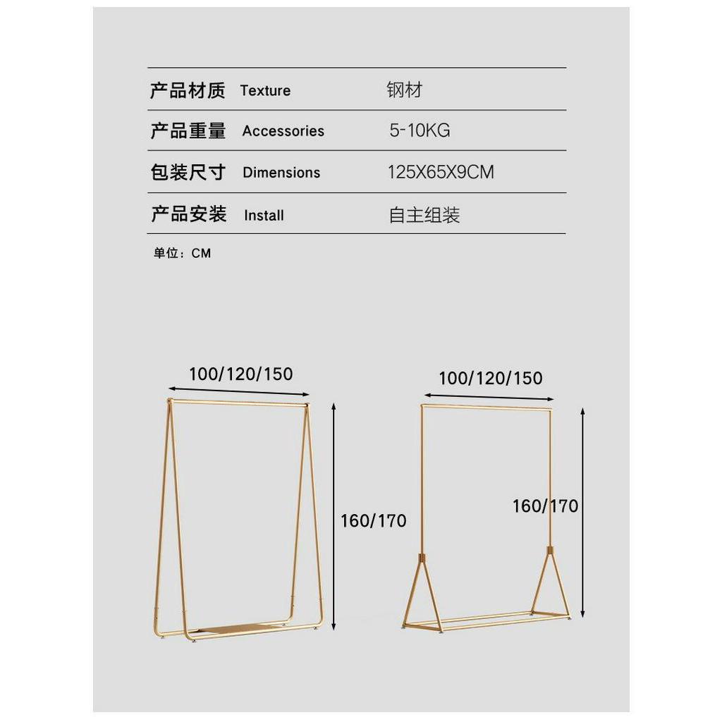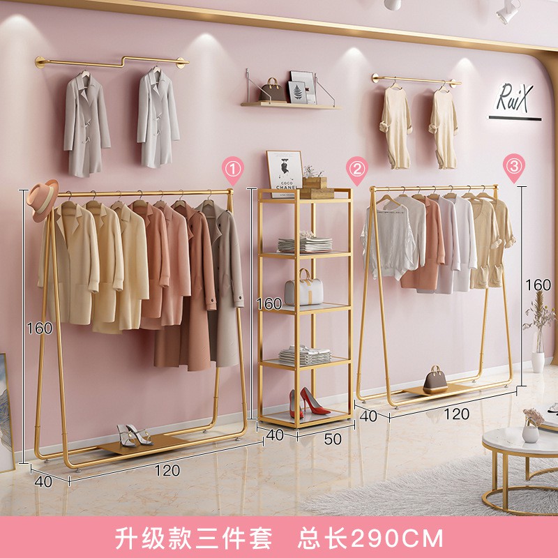 new Clothing store display rack Light luxury rack Women's clothing store Golden wrought iron hangers Floor-standing