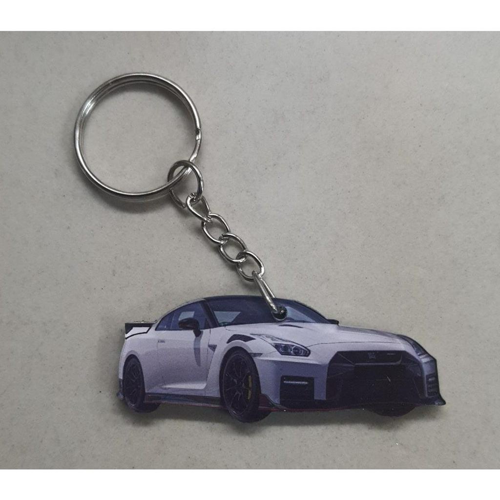 nissan gtr gt-r r25 white keychain 2d