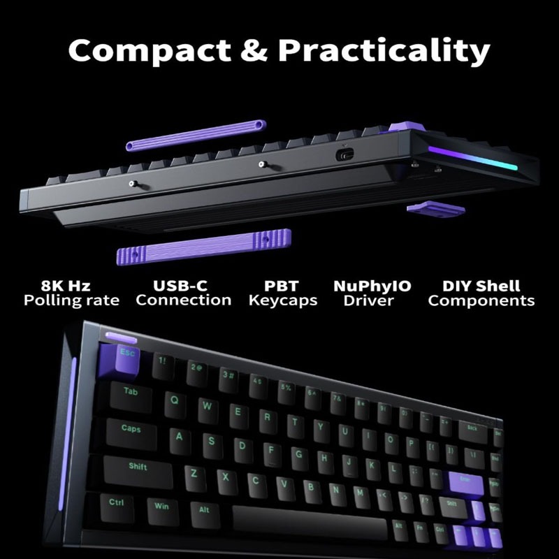 nuphy BH65 All-Aluminum Magnetic Switch Gaming Keyboard,65% 68keys RGB Rapid Trigger Wired Custom Hall Effect Keyboard,PBT keycaps,Actuation Point Adjustable,8K Hz Polling Rate