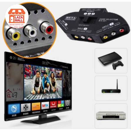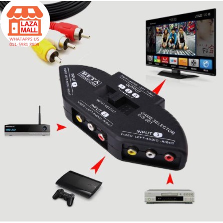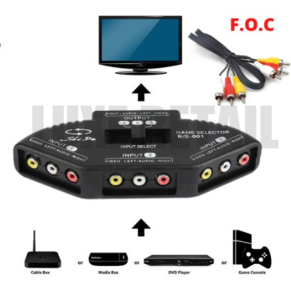 offer ~ {3 WAY RCA} SELECTOR 3 IN 1 OUT SWITCH SYSTEM AUDIO VIDEO INPUT 3 VIDEO DEVICES AV wayang splitter RCA CABLE
