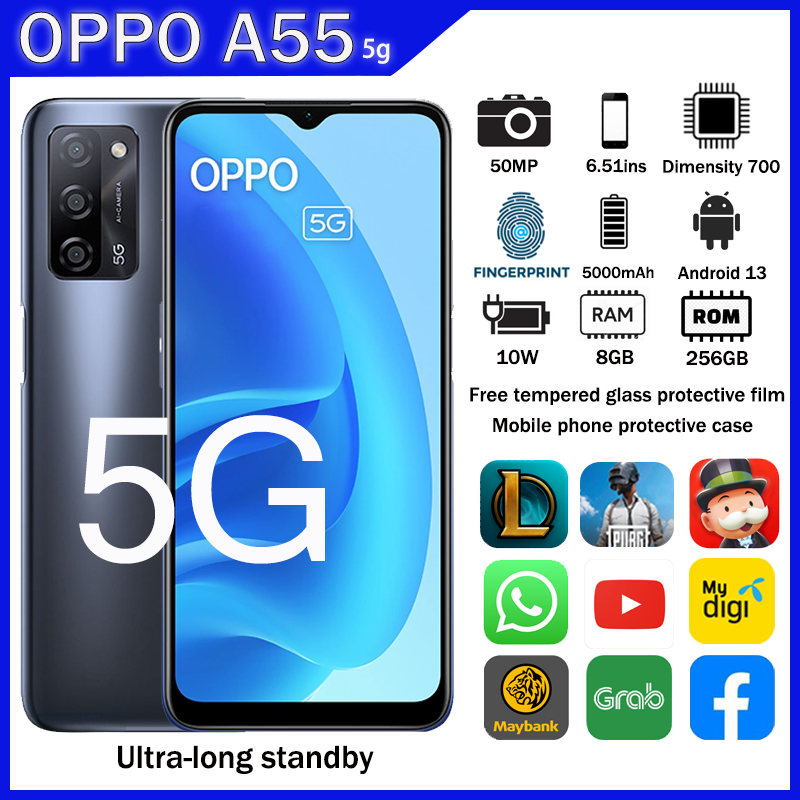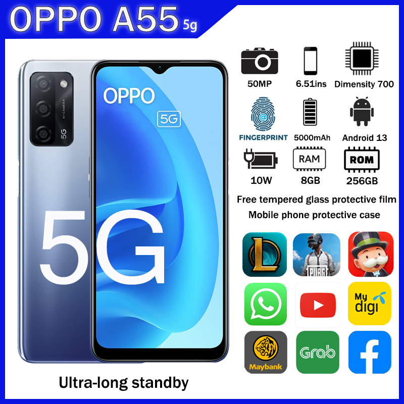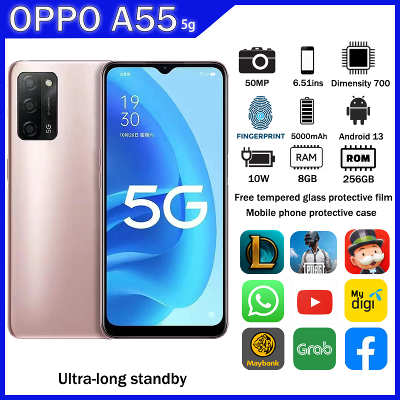 oppo A55 5G phone hp RAM 8GB + ROM 256GB 6.51 inch 5000mAh 50MP Android 12 1 year warranty