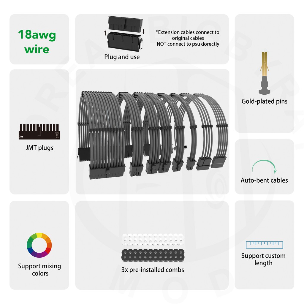 pc extension cables dark gray psu extension cord 24pin gpu cpu8pin cable 30cm