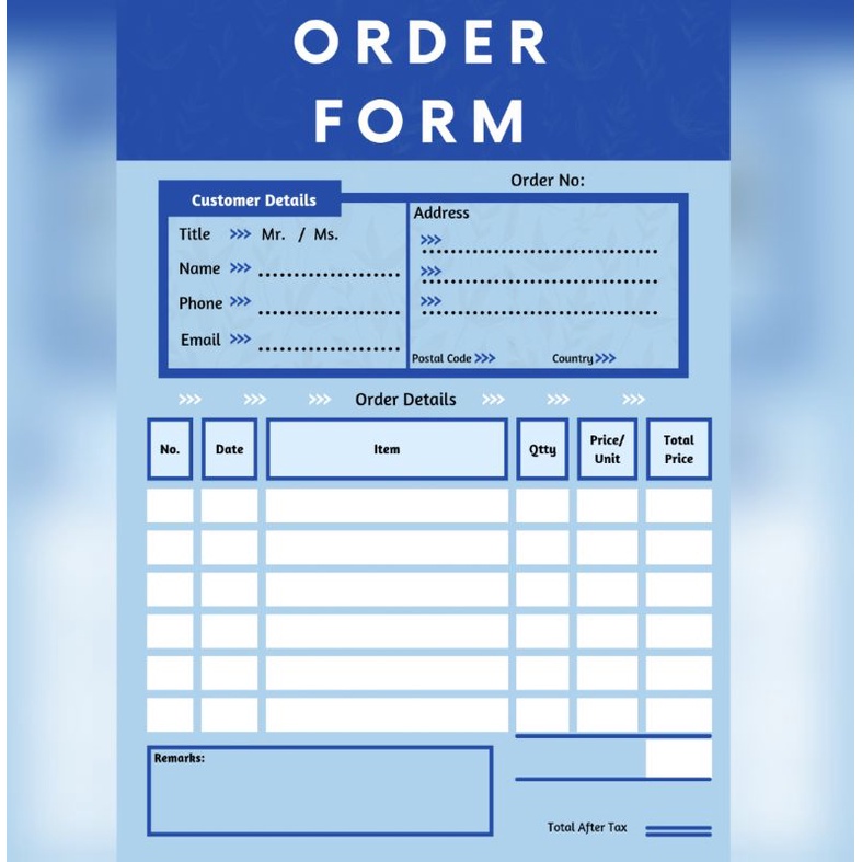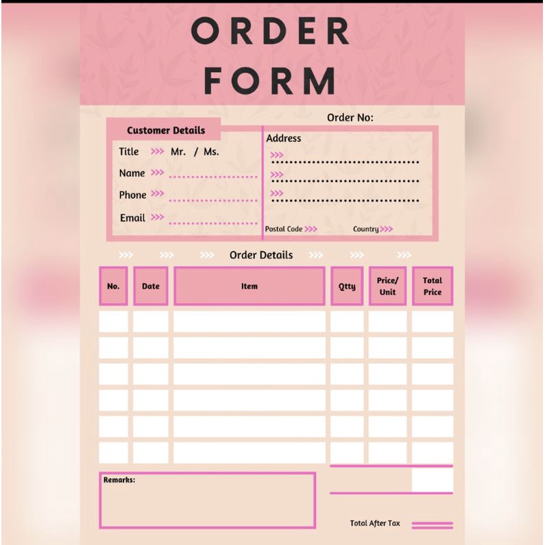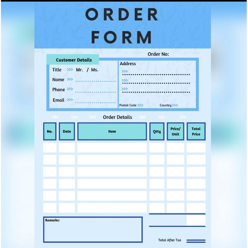 printable Order Form 4 color for online business/shops/stalls