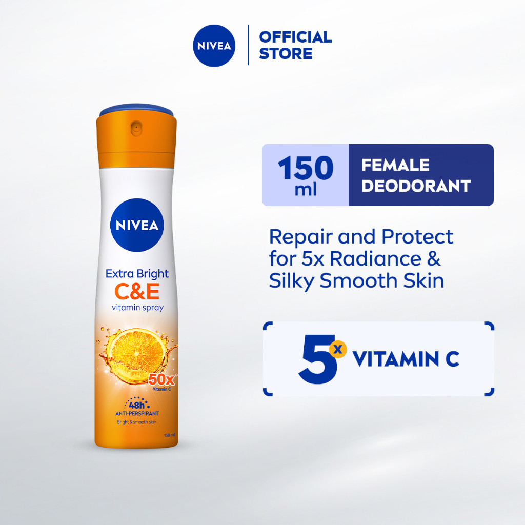NIVEA Extra Bright C&E Deodorant Spray 150ml | Bright & Healthy-Looking Underarms 72H Protection