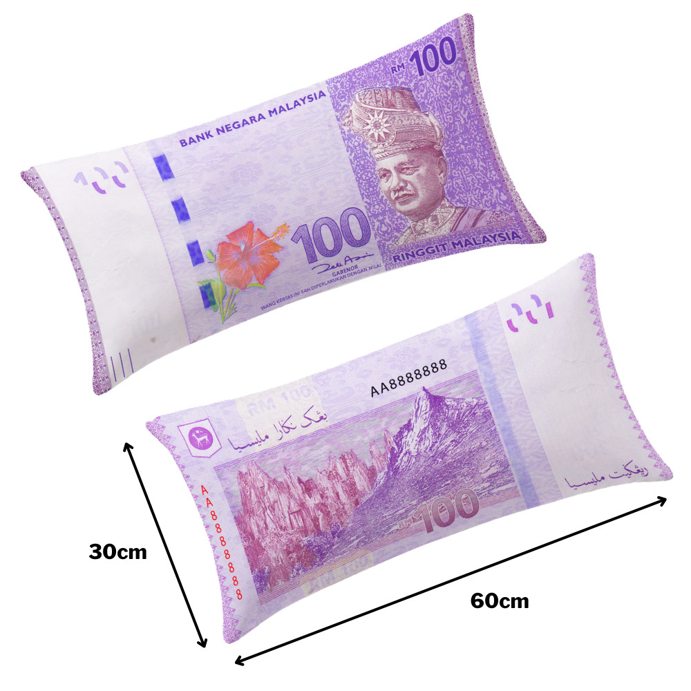 (Washable) Malaysia Money Pillow RM100 RM50 With Zip 马币爆红钞票枕头 # Bantal Ringgit Malaya + Zip