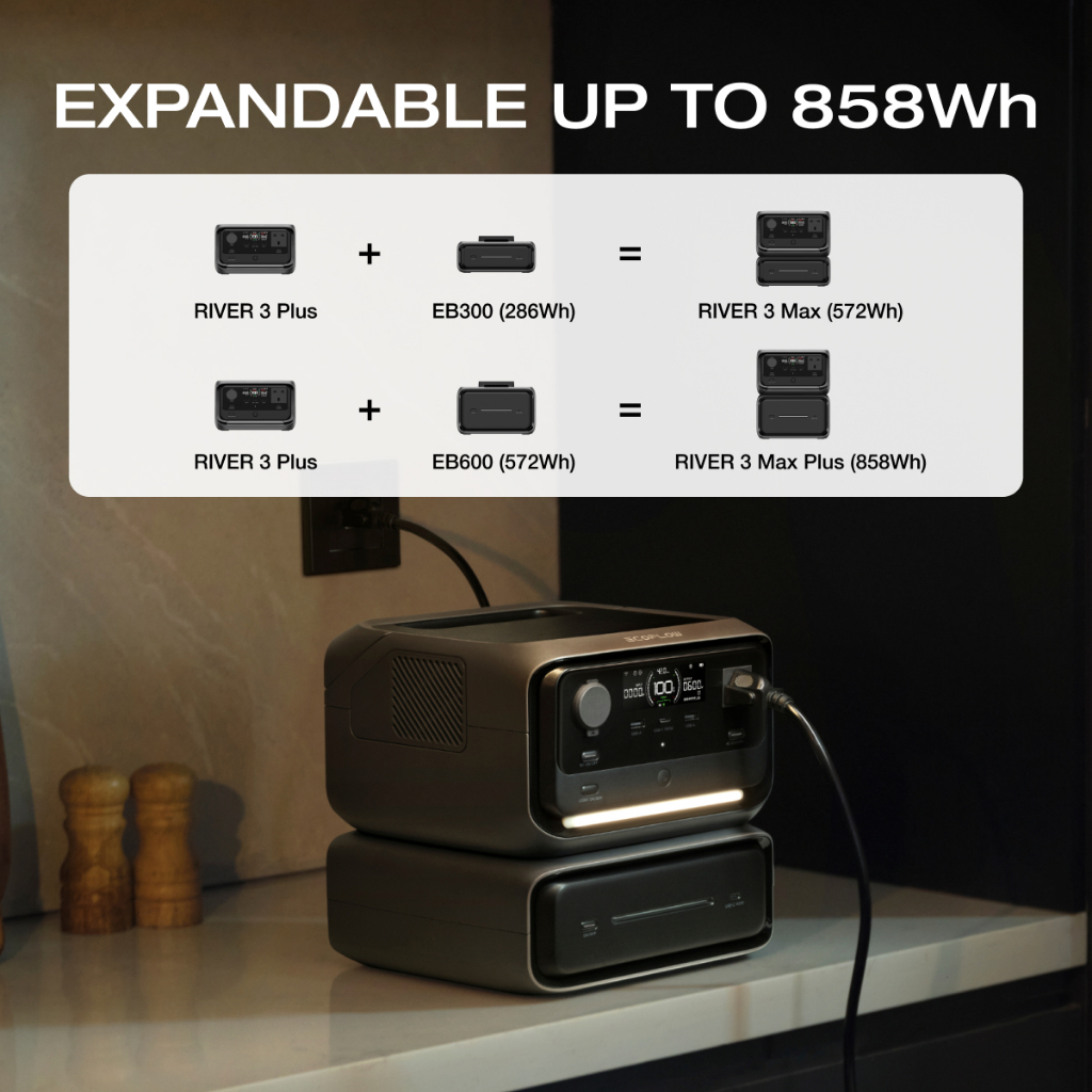 EcoFlow Extra Battery EB300 for River 3 Plus Expansion LiFePO4 (LFP) Battery with 10-Year Lifespan, Built-in 140W USB-C Port for Charging/Discharging, Use Independently