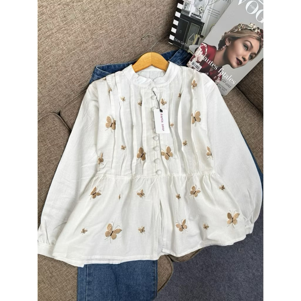 KEMEJA Laynia Butterfly Blouse LatestWanita Linen Shirt Top/ Butterfly EmbroideryWanita